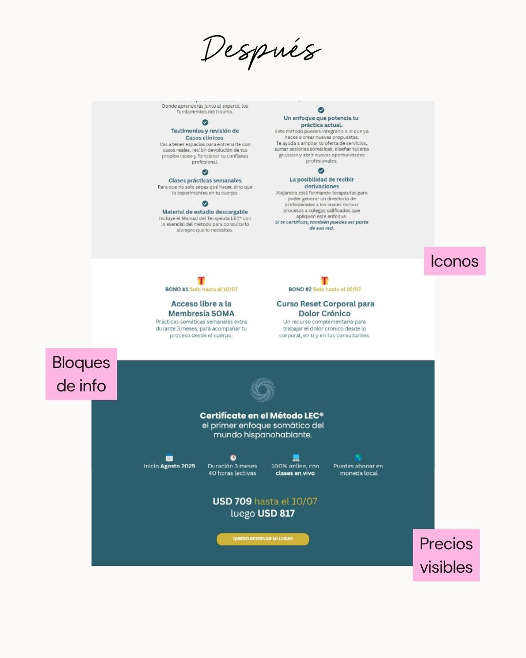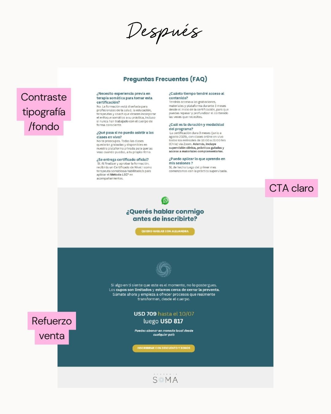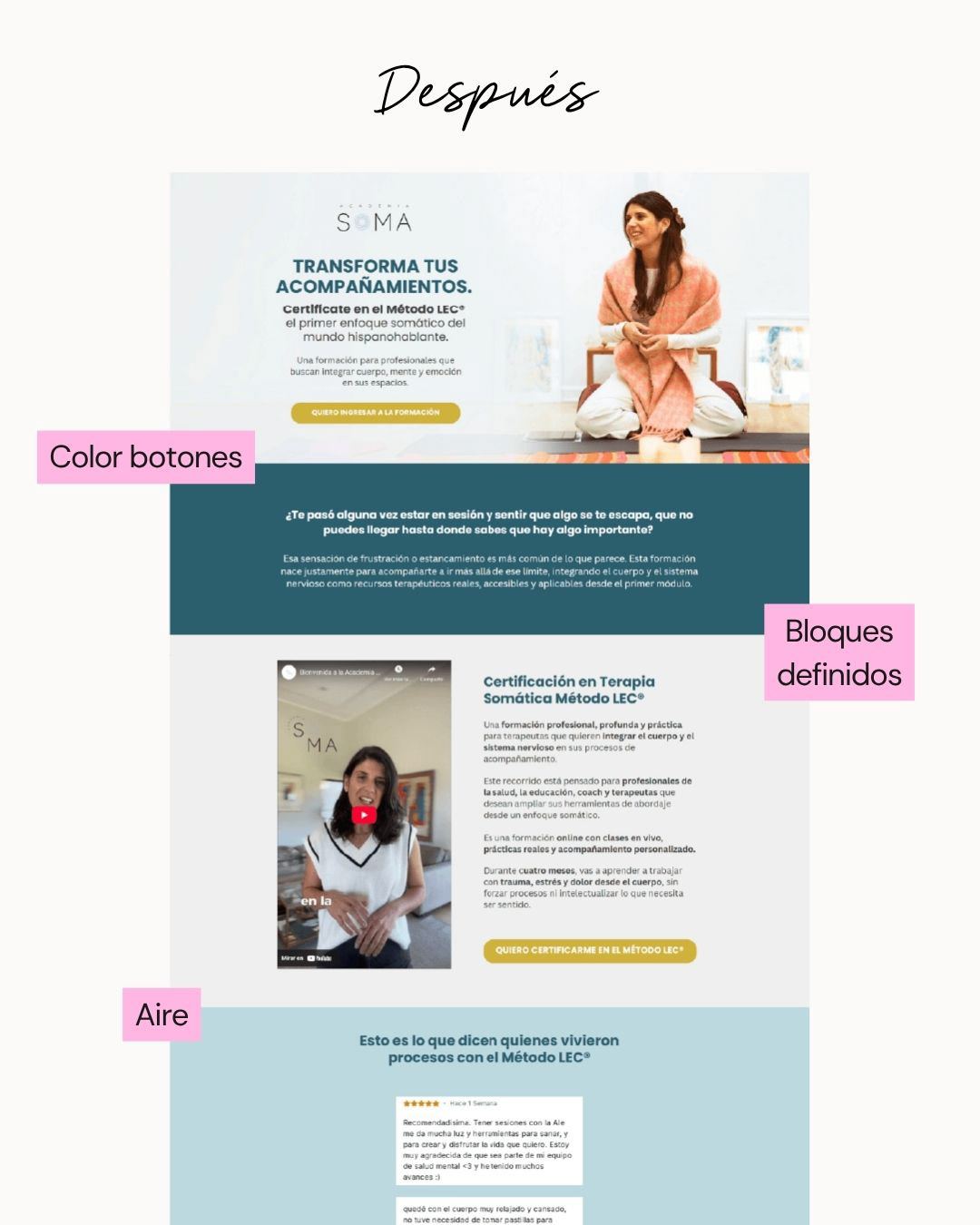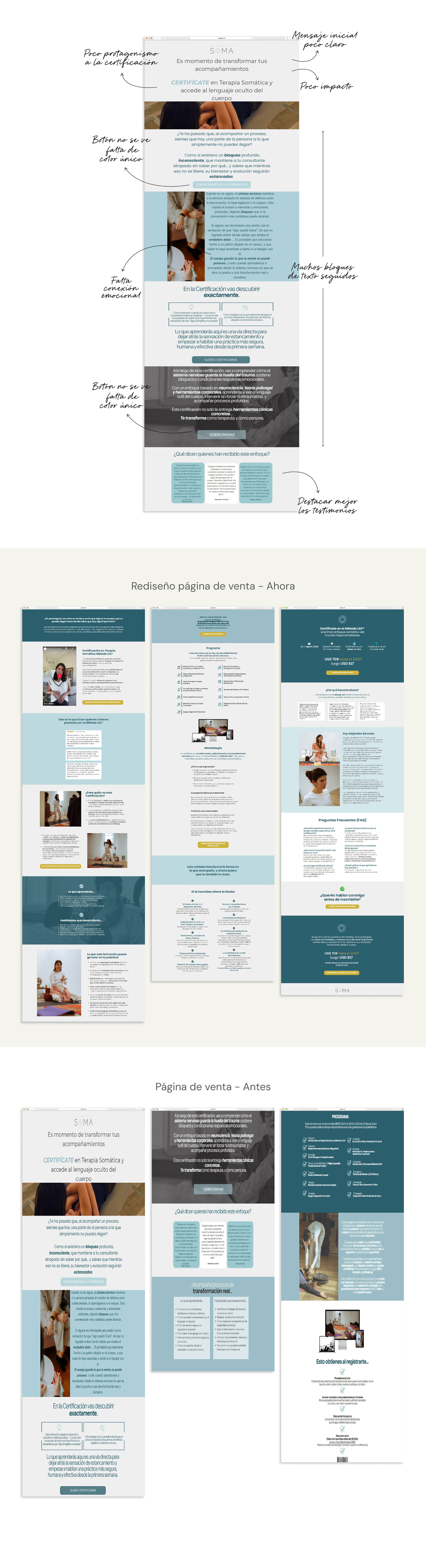Analizamos la landing de A. detectamos oportunidades de mejora en copy, estructura y propuesta de valor. Rediseñamos la página completa con foco en conversión, claridad de mensaje y experiencia de usuario.